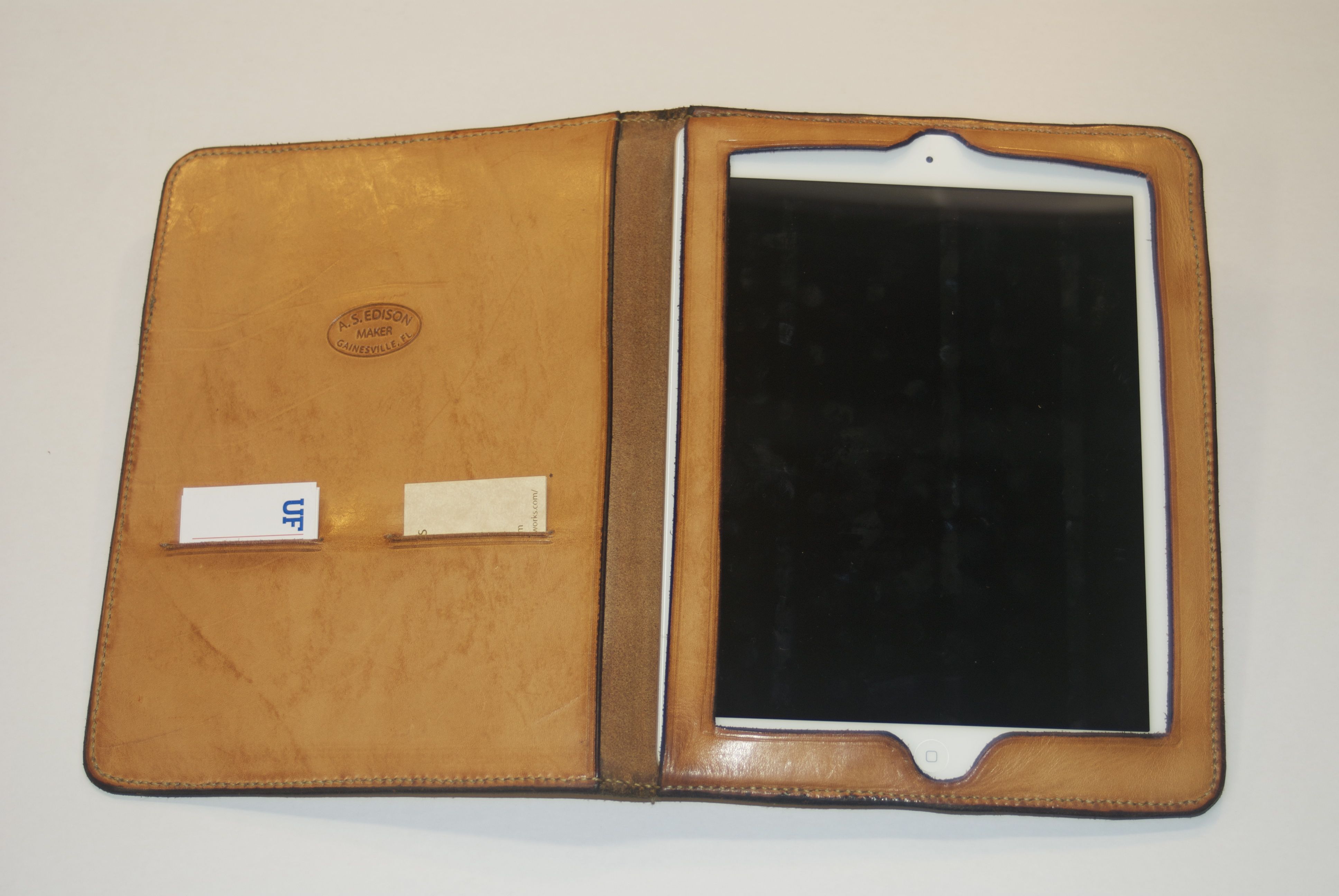 I also wanted to make an iPad case, and it is hard to make a case for something you don’t have.  I came up with a design that I really like.  It is simple, easy to use, light, protective, and it is pretty handy to keep things like receipts and airplane boarding passes during a trip in the flat pocket on the front cover.  I’m now making some slight modifications to make things work just a bit better, and that should be available soon.  Like all of my products, this is done one at a time and is completely hand made.  It takes a long time, and I’m often busy these days.  I definitely won’t be able to make a lot of these, but if there is interest in them I will be able to start offering them.  Just email me for more information (arthur.edison@gmail.com).