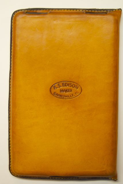 I’ve had some requests for a Kindle Fire case, and the holiday break finally allowed time to work on it. It is smaller and simpler than my iPad 2 cases, and I like the way it feels to hold and use. I started by making a wooden form of a Kindle Fire (thanks to Spencer for the use of his Kindle!). The back is wetted, formed over the wood, and allowed to dry. Then the front face piece and inside flap are added, and the entire thing is hand sewn and finished. Like my iPad 2 cases, the Kindle Fire case is a snug fit to prevent it from falling out. It will break into the device and your hand over time.