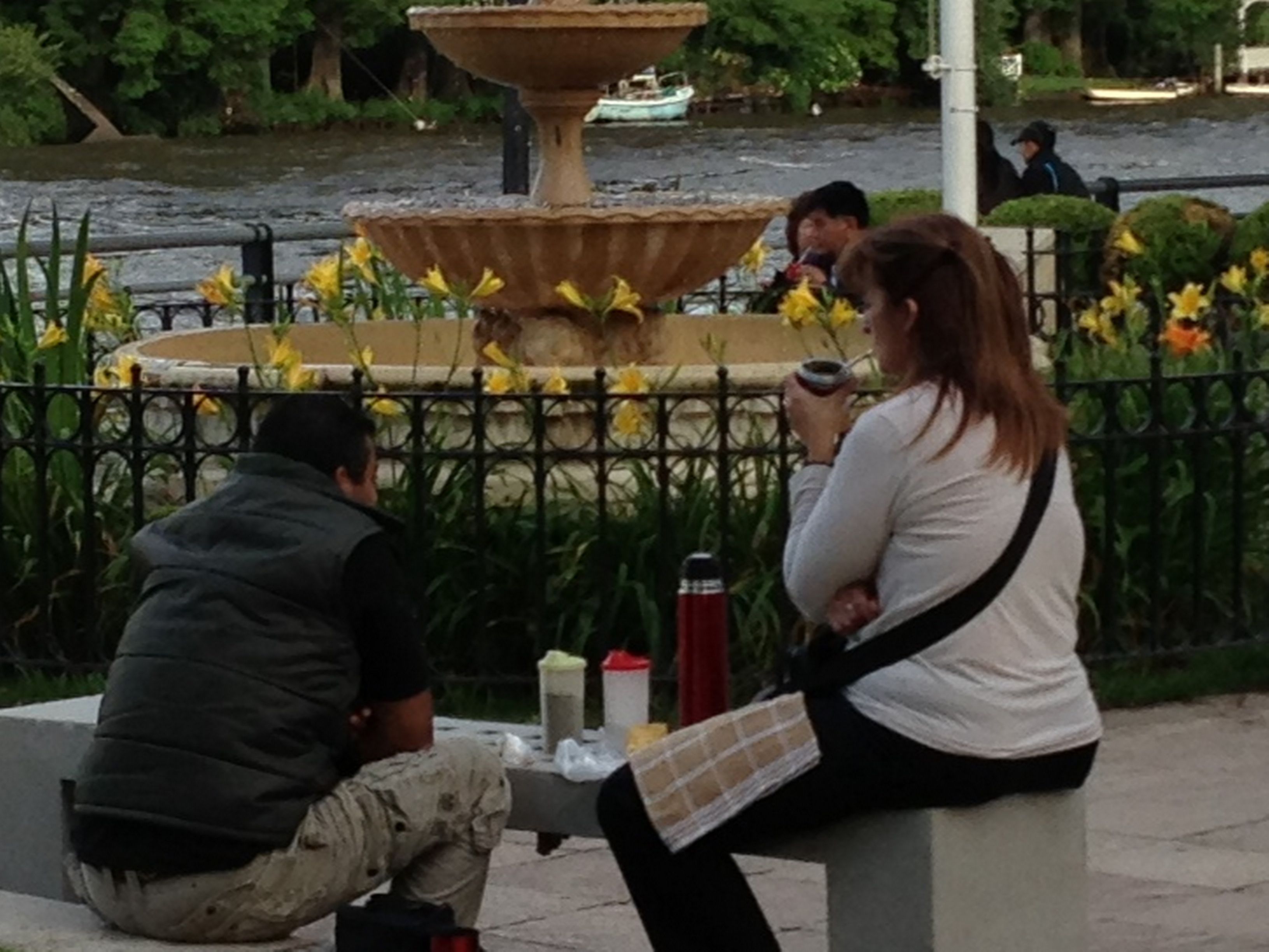 People in Buenos Aires and surrounding areas love to drink something called mate. It is a very interesting drink and a cultural activity. Yerba mate leaves are put into a gourd-like cup, hot water is poured on top, and a metal straw is used to drink the liquid (which has caffein, partly explaining its popularity). However, unlike almost anything I know, drinking mate is a social activity. Groups of friends, lovers, or people in the same class in school will share a single mate cup and pass it around to drink. After each sip, a small amount of hot water is added from a thermos, and the cup passed to the next person. It is very foreign to people from the USA, and our first reaction is that this is a great way to pass germs around a group.