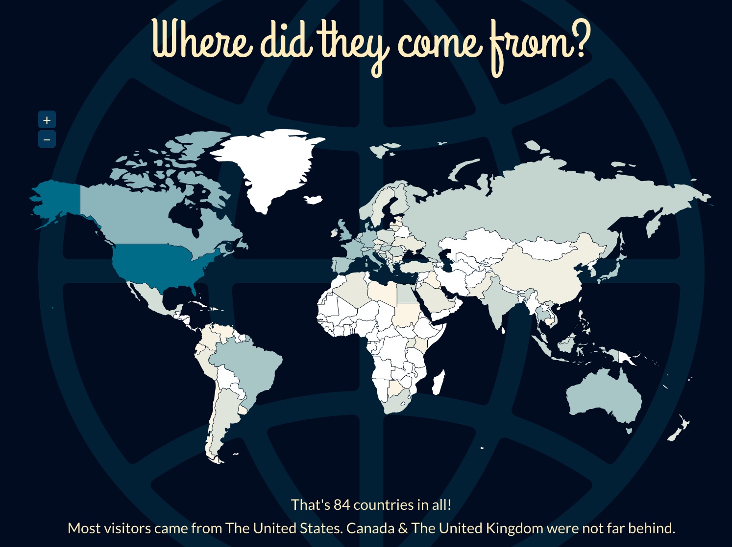 WordPress sends an annual report on the final day of the year. I was surprised and amazed to find that people from 84 countries visited my site during 2013!