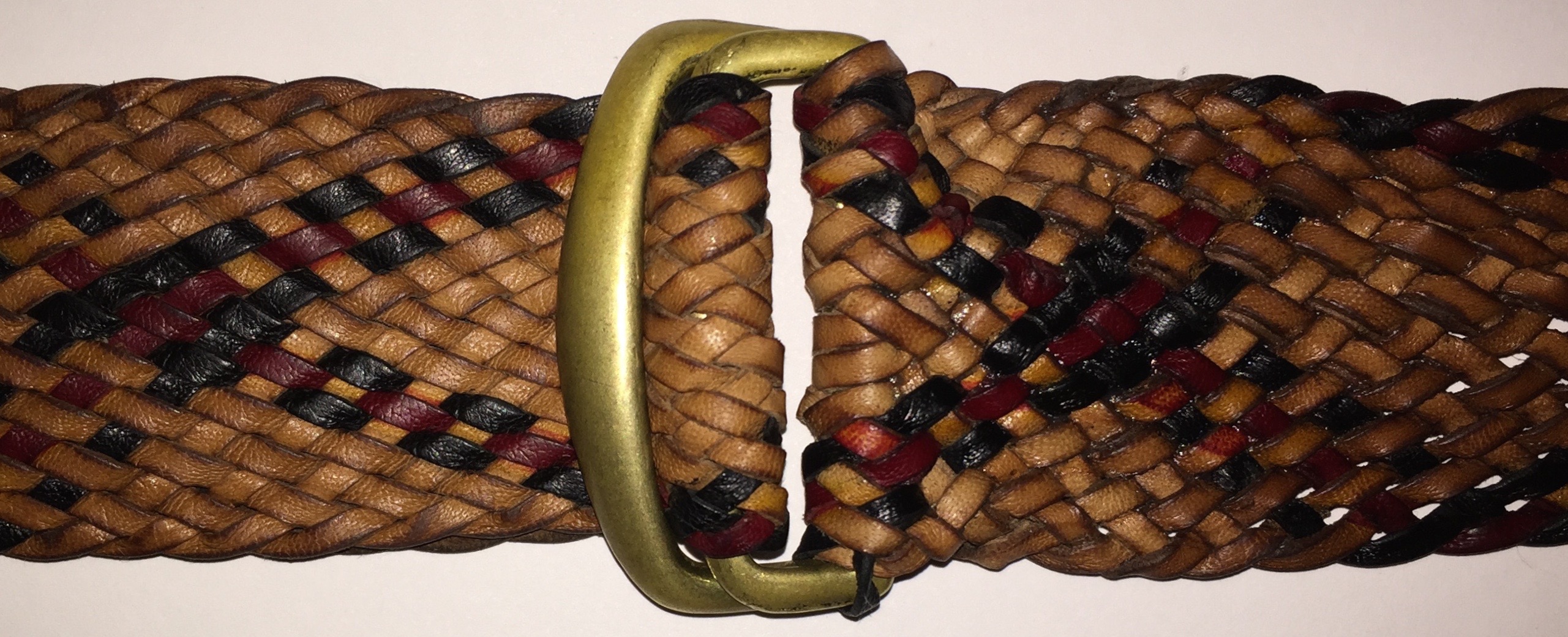 Then I got distracted when my jeans wouldn’t stay up, and I remembered my frustration with my favorite belt. I always test things that I make, and I’ve been using a 16 strand braided kangaroo leather belt for the last year or so. I really like the belt. It is light, fully adjustable, and doesn’t activate TSA metal detectors in airports. But the buckle has driven me crazy for most of the time. It leaves a gap that I don’t like on the front of the belt, and I didn’t put it together quite right, so the buckle pair sometimes slips. I decided that I’d put off the red bag for another week and try to make something that worked better, and I came up with a new design of a leather backing that holds it in place and looks more like a conventional buckle.