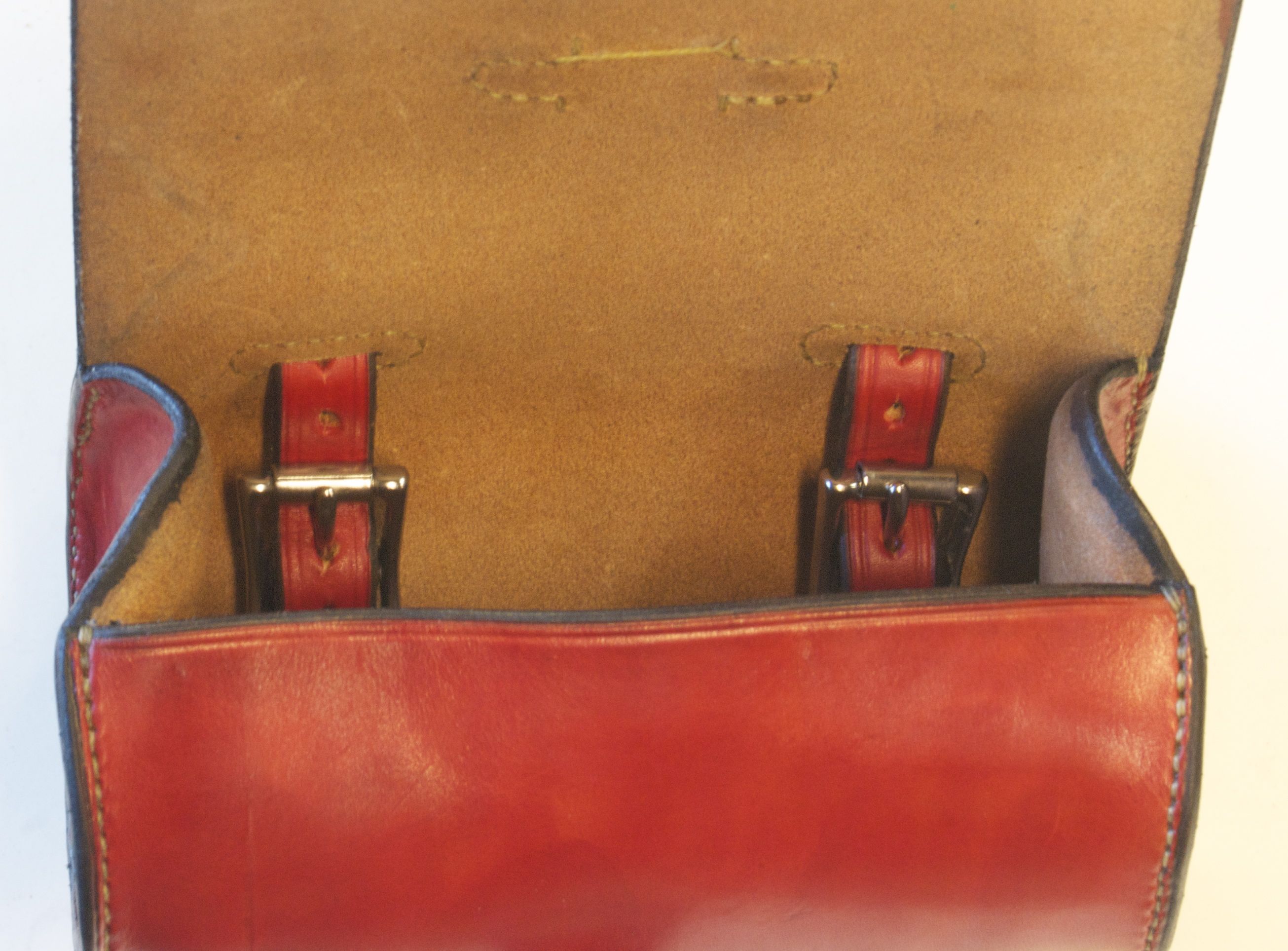 Inside of 2 strap red bag.